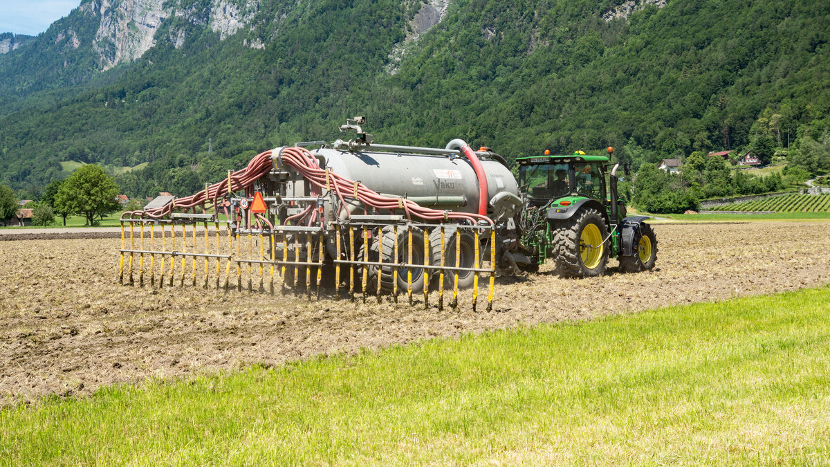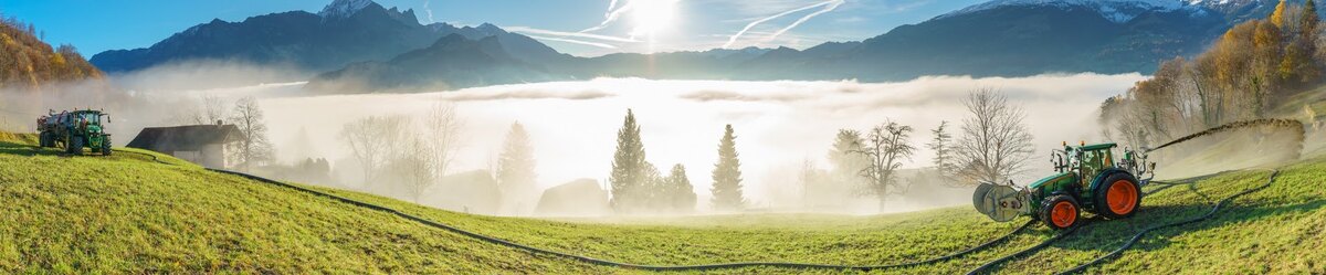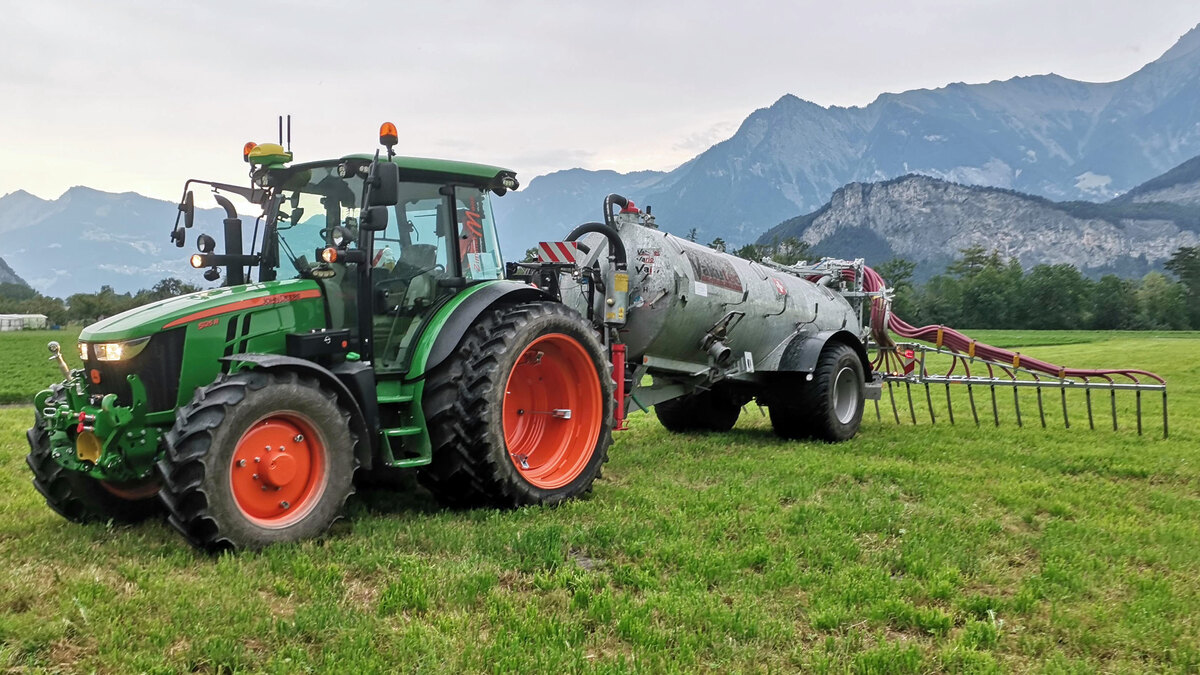 Zu unserem Fuhrpark gehört nicht nur die Gülleverschlauchungsanlage sondern auch herkömmliche Güllefässer. Mit diesen können sämtliche Wünsche erfüllt werden. Es ist möglich die Gülle mit Schleppschlauchverteiler, Prallteller oder mit einer Weitwurfdüse auzubringen. Damit wir dem Boden Sorge tragen können, sind die Güllefässer mit bodenschonenden Breitreifen ausgestattet.