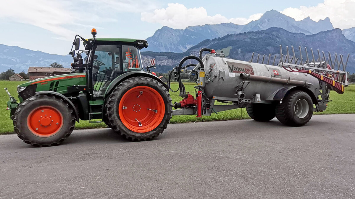 Mit unserem 8m3 Vakumfass sind wir ideal Ausgestattet für enge Hofzufahrten und schmale Strassen. Mit einem Gesamtgewicht von 18t (Traktor inkl. Fass beladen) ist ein bodenschonendes Ausbringen garantiert.