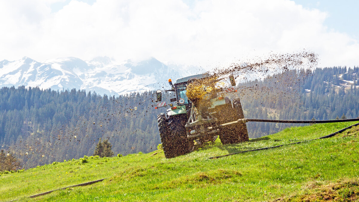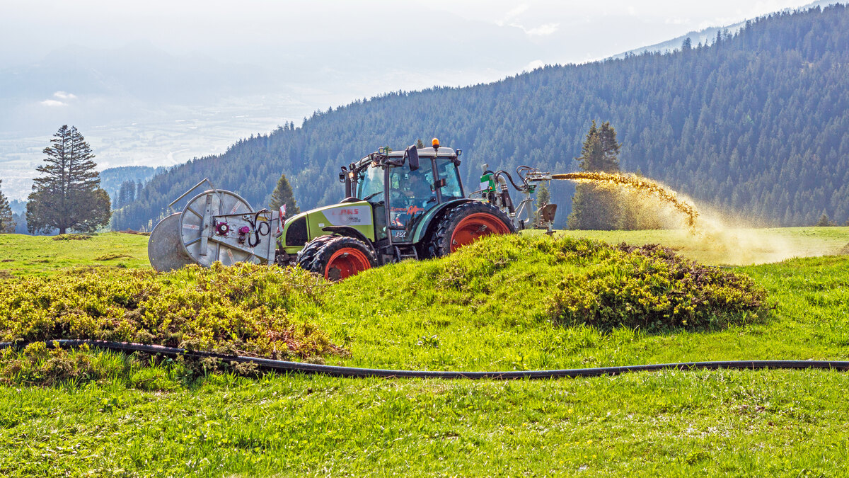 Auch an Hanglagen oder im Bergbetrieb können wir die Gülle ausbringen. Mit kleineren Schläuchen, Werfer oder Möschaverteiler und passendem Verteilfahrzeug sind wir bestens ausgestattet.
