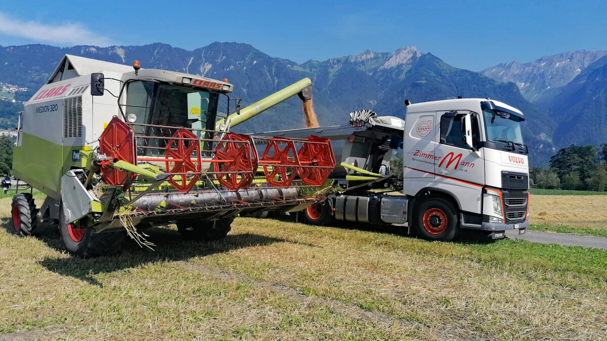 Mit unserem Sattelschlepper transportieren wir auch das Getreide vom Feldrand zur Getreidemühle.