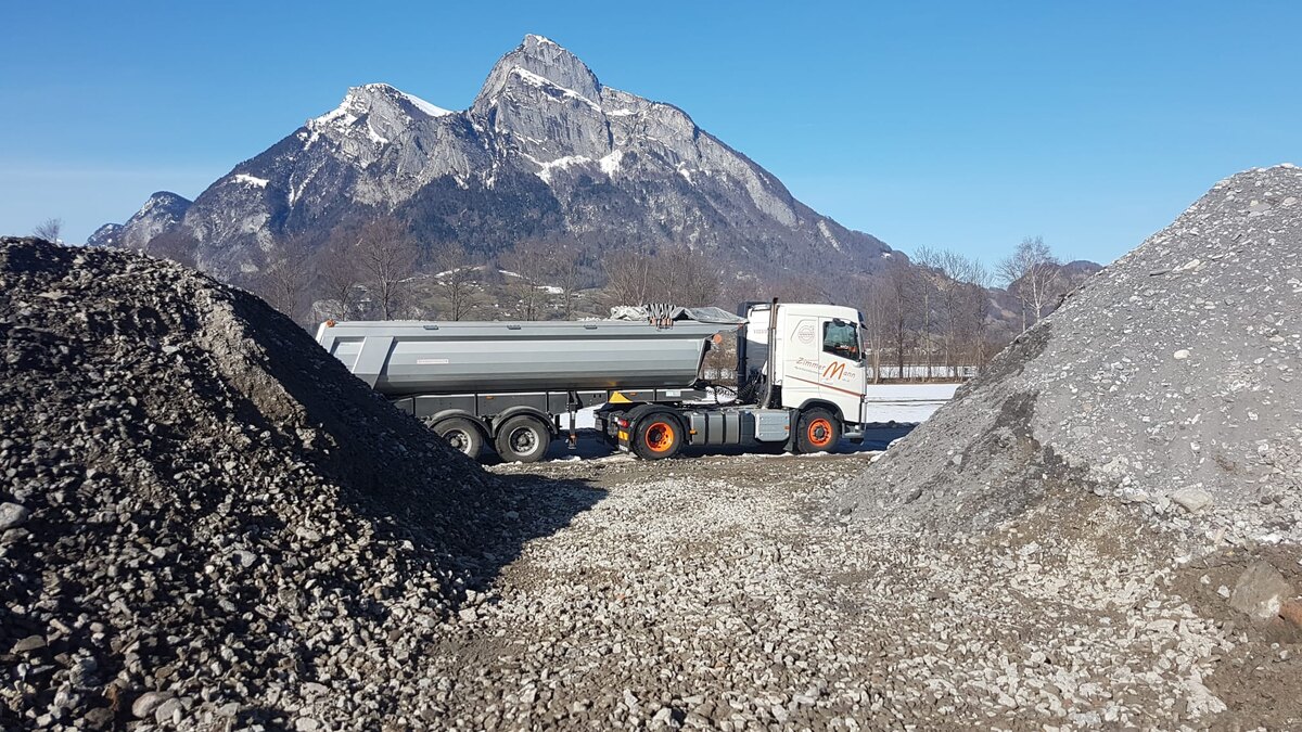 Die passende Lösung für ihr Projekt könnte eventuell unser Sattelschlepper mit Kippauflieger sein. Wo es möglich ist, setzen wir unseren Kippauflieger zum Transport von Kies, Aushub oder Erdmaterial ein. Dank der 4x4 Zugmaschine sind Baustellenzufahrten oder Deponien kein Hindernis.